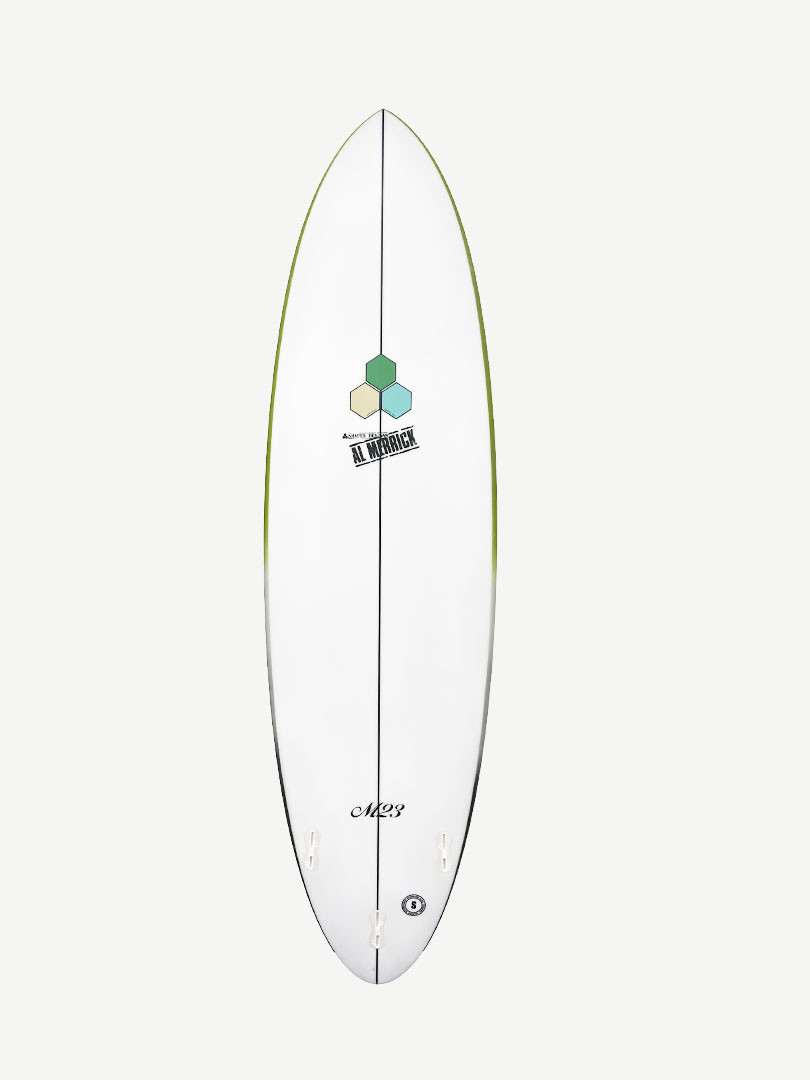 The M23 comes from the storied M13 bloodlines, a favourite hybrid board Al Merrick made for himself and rode variants of for decades from fun Rincon to maxing Sunset. A true high-performance hybrid that caters to the widest possible type and size of surfer - and for the widest range of wave conditions. Not to be confused with the CI Mid, the M23 carries more foam, boasting a fuller rail and sleeker nose outline. It paddles like a champ while still riding more like a shortboard.