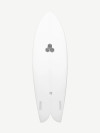 For sizing reference on the Feb's Fish, Mikey is 6'3, 75kgs and rides the 5'5 in stock dims.