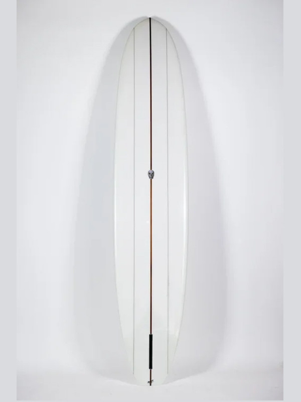 Based off of one of Chriss templates from some years ago, the key ingredients are subtly distilled. A wide area towards the middle/back combined with soft semi refined classic rails ( in the CC landmark style). With a narrower nose and long soft concave, this model lets you trim, turn and adjust your position from all parts of the board. All this while retaining flow and a sense of elegance at all times. The custom made rocker, rather flat from tail to the middle, still has a slight kick in the back and will ensure constant speed while elevating on the tip.