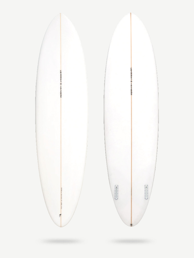 Our original CI Mid debuted with the ever reliable 2-plus-1 fin set-up (big centre fin, small side bites). While it can also be enjoyed as a single-fin, the side-fin placement is too far forward to work properly as a twin. So, when updating our popular "CI Mid" to accommodate two fins, we once again worked with the Mid's co-designer Devon Howard. After riding multiple R&D revisions with various fin placements - and adding tweaks to both tail rocker and overall dimensions - Devon concluded: "A really great board just got even better."