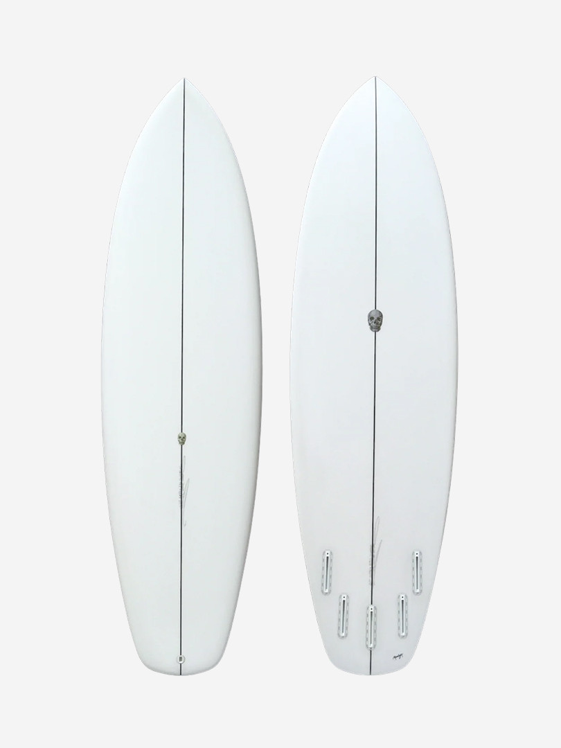 Still probably the most versatile design of all surfboard craft. If you were stranded on an island for the next 10 years and were only allowed one board this would be my recommendation. Tested from Cardiff Reef to Ulu Watu, Waikiki to Pipe, this is a very trustworthy design. Double foil fins with low cant and toe complimented by the twin pin tail allow this board to reach high speeds and insure hold whenever on the rail.