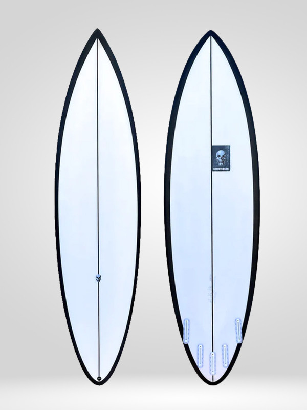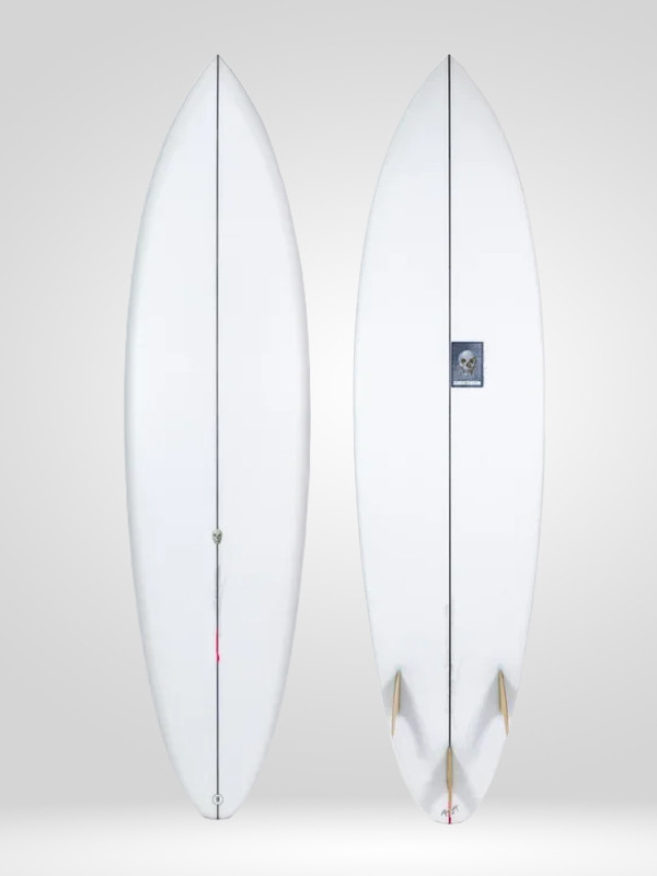This is a streamlined mid-length design inspired by the Skip Frye K model. I was very fortunate to be shaping room neighbours with Skip Frye for 10 years. I owe a lot of my inspiration to the Skipper. I love riding this model when I am too lazy to ride a shortboard but I'm not in the mood to deal with a log. Low rails, v and concave bottom contours, this board zips and trims at any break. Also an amazing board to get shacked on at your local beach break when the swell is up and the winds are howling offshore. A great daily driver as well for those that prefer length in their quivers